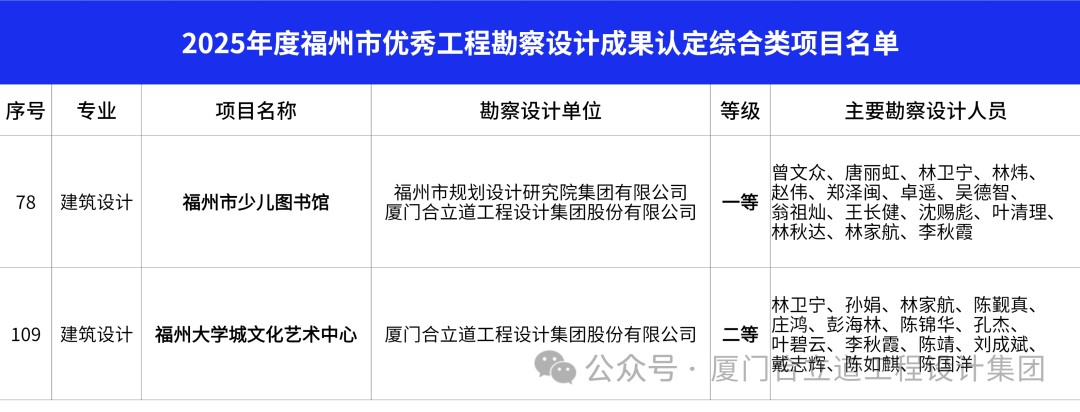 近日,福州市工程勘察設(shè)計協(xié)會公布2025年度福州市優(yōu)秀工程勘察設(shè)計成果認定結(jié)果,合立道設(shè)計集團榮獲兩項認定。其中: