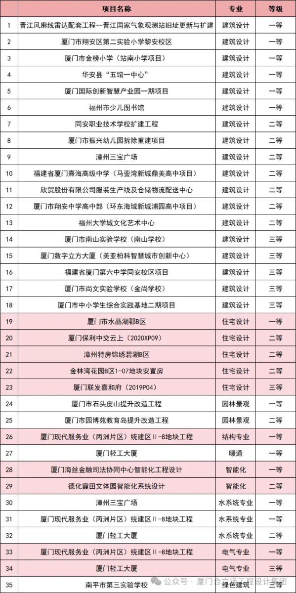 7月14日,福建省勘察設(shè)計(jì)協(xié)會(huì)公布2025年度福建省優(yōu)秀工程勘察設(shè)計(jì)成果認(rèn)定結(jié)果,經(jīng)專(zhuān)家評(píng)審委員會(huì)嚴(yán)格評(píng)審及公示,合立道設(shè)計(jì)集團(tuán)30個(gè)優(yōu)秀設(shè)計(jì)項(xiàng)目,共計(jì)攬獲9大專(zhuān)業(yè)領(lǐng)域35項(xiàng)成果認(rèn)定,其中,一等成果認(rèn)定14項(xiàng)、二等成果認(rèn)定13項(xiàng)、三等成果認(rèn)定8項(xiàng)。